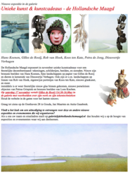 die gedurende 2 dagen hun werken tentoonstellen. Toegang gratis. www.kunstroutewaranda.nl